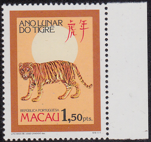 Am 3.Februar 1986 erschien zum Chinesischen Neujahr (Jahr des Tigers 09.02.1986 - 28.01.1987) diese Marke (MiNr 550 A) mit der Abbildung eines Tigers.