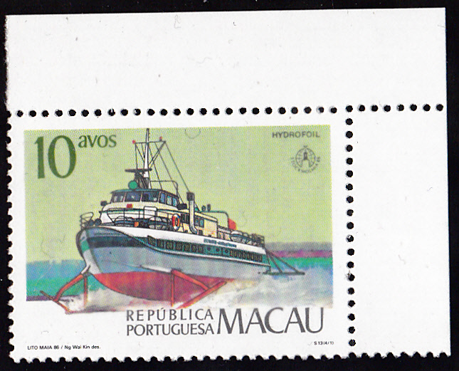 Zur Internationale Briefmarkenausstellung STOCKHOLMIA ’86 in Stockholm erschien in Macau am 28.8.1986 eine Serie mit der Abbildung von Fährschiffen.
