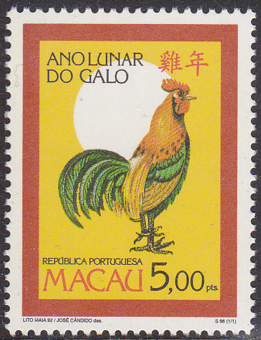 Zur portugiesisch-chinesischen Freundschaft ist am 27.11.1992 eine Marke (MiNr 711) erschienen. Auf der Marke werden ein Hahn und ein Drache dargestellt.