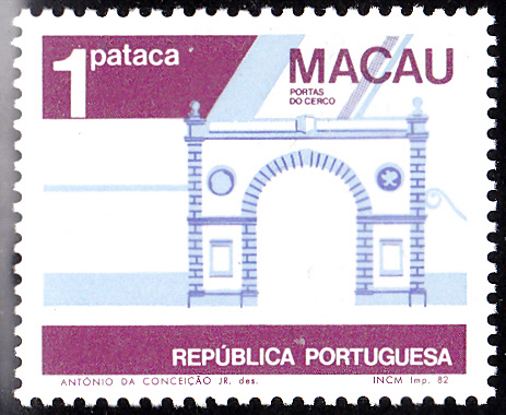 Die Marke zu 1 Pataka zeigt das 1849 erbaute Grenztor "Portas do Cerco", das Macau vom chinesischen Festland trennte. Hier zeige ich wieder eine Marke der ersten Auflage (MiNr 488 I) mit dem Druckvermerk "INCM Imp. 82" am rechten unteren Markenrand: