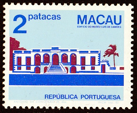 Die nächste Marke dieser Serie zeigt das Luís-de-Camoes-Museum in Macau. Hier eine Marke der ersten Auflage (MiNr 489 I) mit dem Druckvermerk "INCM Imp. 82" am rechten unteren Markenrand (ist auf dem Scan wegen der hellblauen Farbe nur schwer zu erkennen!):