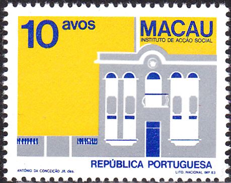 Am 12. Mai 1983 erschienen weitere Marken in der Freimarkenserie "Gebäude". Die Marke zu 10 Avos (MiNr 500) bildet das Sozialamt ab. Die Marke gibt es mit Druckvermerken mit Datum (MiNr 500 I) und ohne Datum (MiNr 500 II)