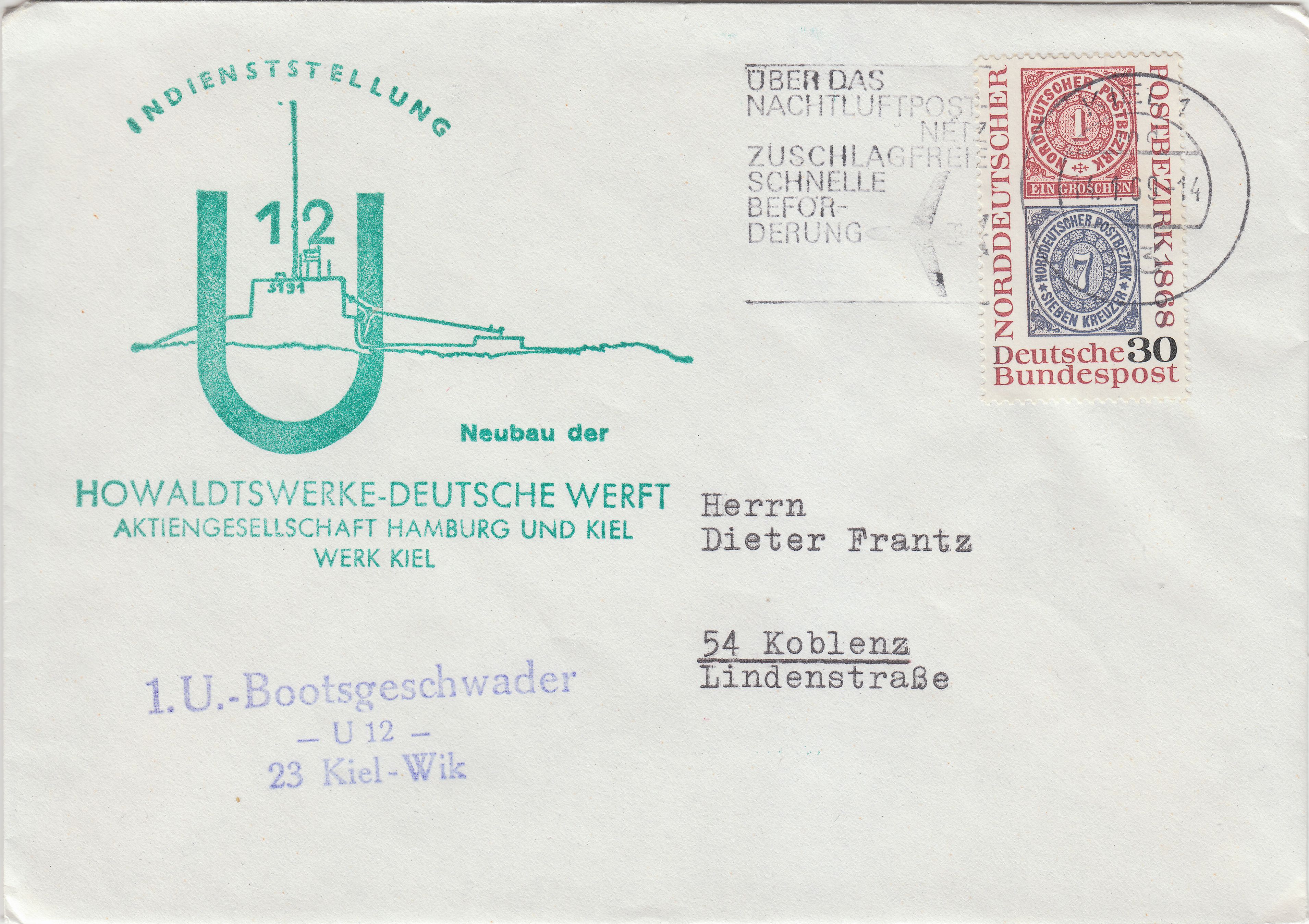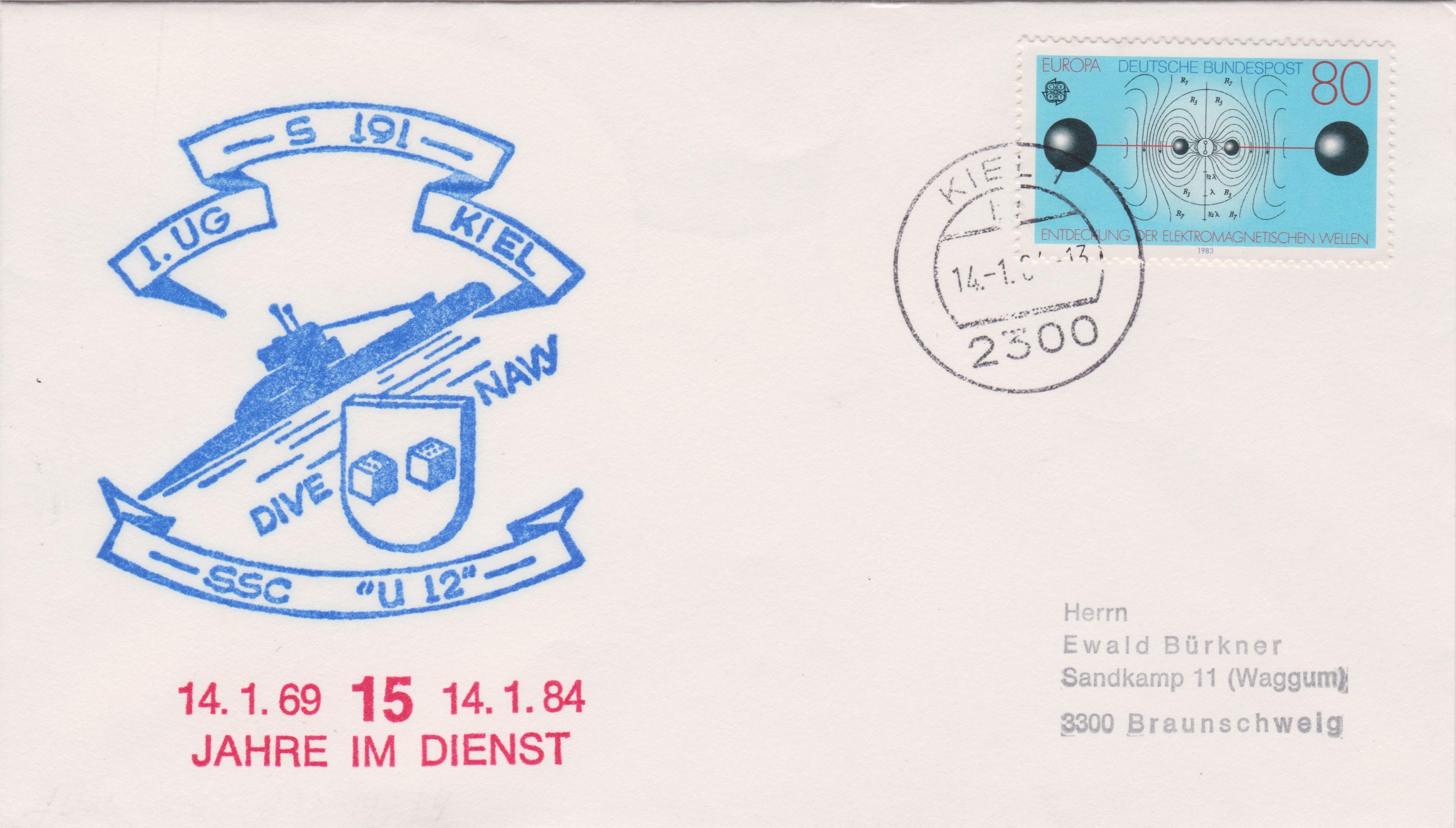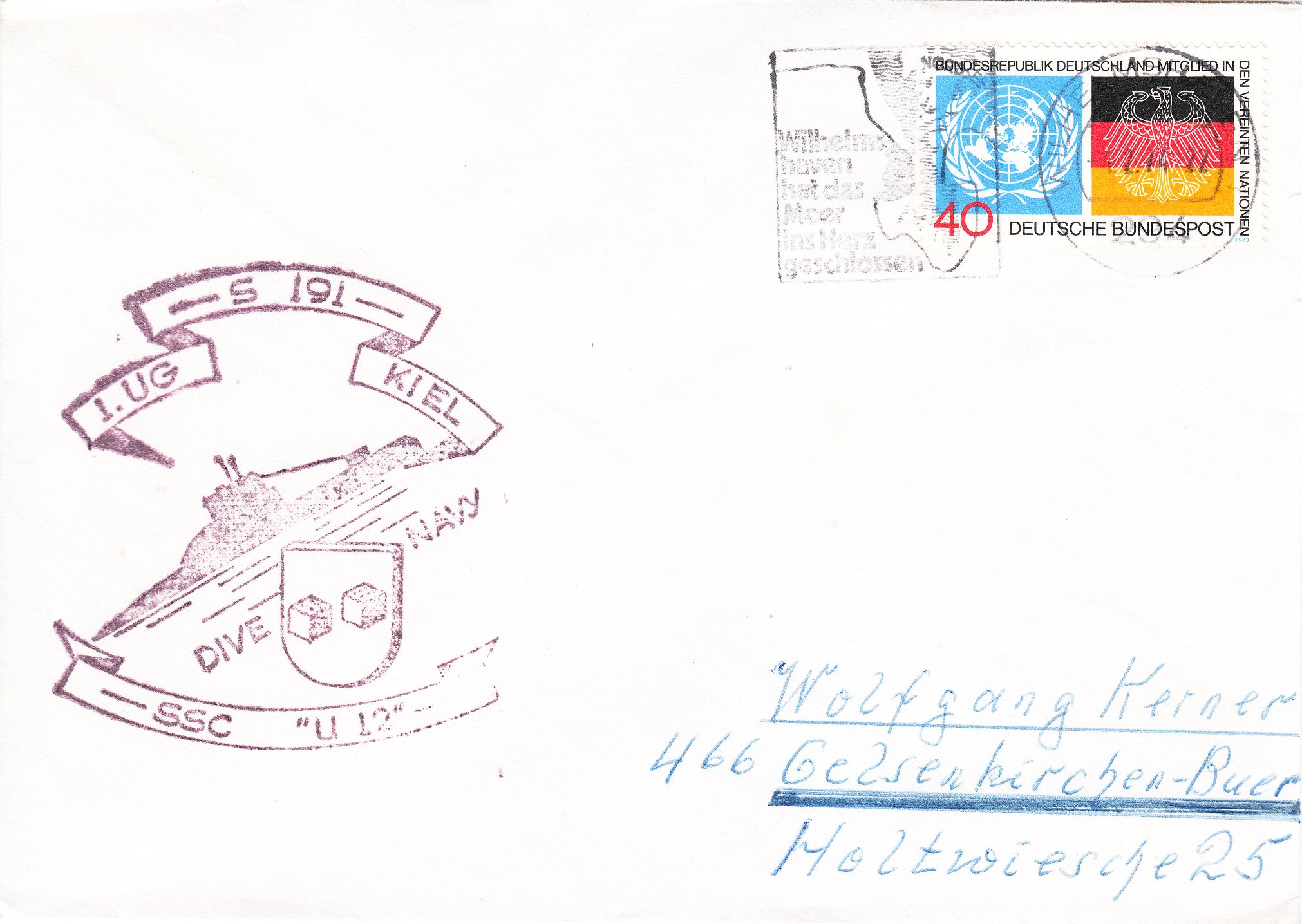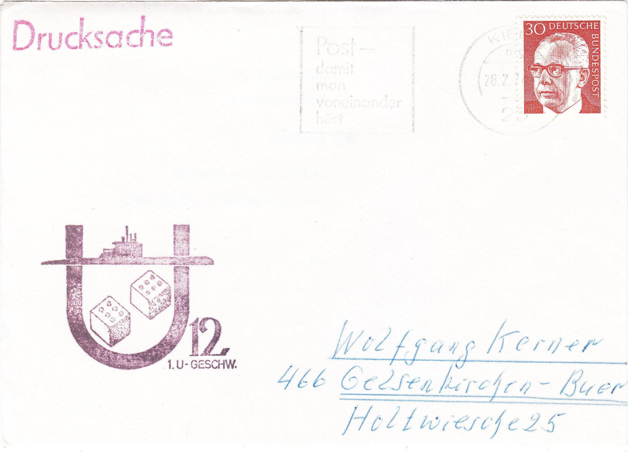 Es gehörte zum in Kiel stationierten 1. Ubootgeschwader, was der Cachetstempel auf diesem am 01.02.1974 in WILHELMSHAVEN aufgegebenen Beleg dokumentiert:
