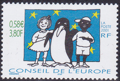 2001 erschien zum 70. Geburtstag von Tomi Ungerer eine Dienstmarke für den Europarat (MiNr 57) mit der Abbildung "Ich bin weiß, ich bin schwarz, ich bin weiß und schwarz" Bach einer Karikatur von Tomi Ungerer.