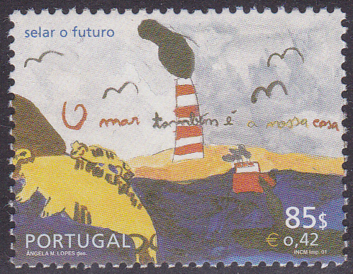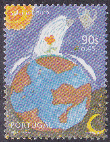 Zum Internationalen Malwettbewerb für Kinder "Zukunft auf Briefmarken" gab es in Portugal eine Markenausgabe mit Kinderzeichnungen. Auf dieser Marke (MiNr 2496) wird ein Kinderzeichnung zum Thema "Umweltverschmutzung durch Industrieanlagen" gezeigt.