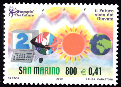 Auch in San Marino ist eine Marke (MiNr 1897) zum Internationalen Malwettbewerb für Kinder "Zukunft auf Briefmarken" erschienen. Sie zeigt die Jahreszahl "2000" am Fuße des Monte Titano von Laura Carattoni.