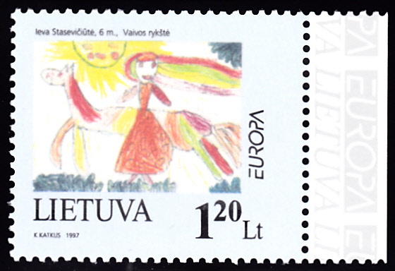 In Litauen erschien diese Europamarke 1997 (MiNr 636) zum Gemeinschaftsthema "Sagen und Legenden" mit einer Kinderzeichnung "Regenbogen".