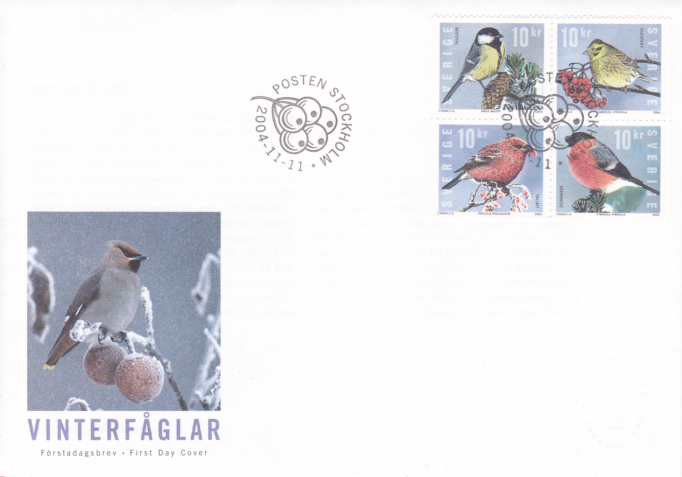 Die bereits früher schon gezeigte Marke aus Schweden (MiNr 2442) mit einem Gimpel (Pyrrhula pyrrhula) ist zusammen mit 3 weiteren Marke in einem Markenheftchen (MiNr MH 302) erschienen. Hier zeige ich einen Zusammendruck der vier Marken.