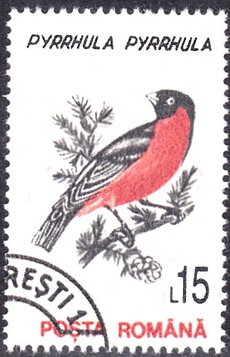 Auch diese Marke aus Rumnänien (MiNr 4877) zeigt uns einen Dompfaff (Pyrrhula pyrrhula).