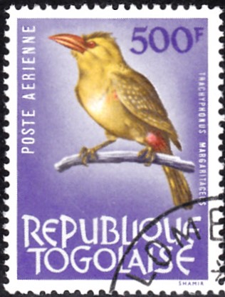 Auf dieser Ganzsache aus der Ciskei (vom 4.12.1981 bis 27.4.1994 von Südafrika unabhängiges Homeland) wird auf dem seitlichen Bild ein Schwarznacken-Bartvogel (Lybius torquatus) gezeigt. Dieses Motiv gibt es auch als Markenmotiv (Ciskei MiNr 14). Der Wertstempel zeigt einen Schwarzkopfpirol (Oriolus larvatus).