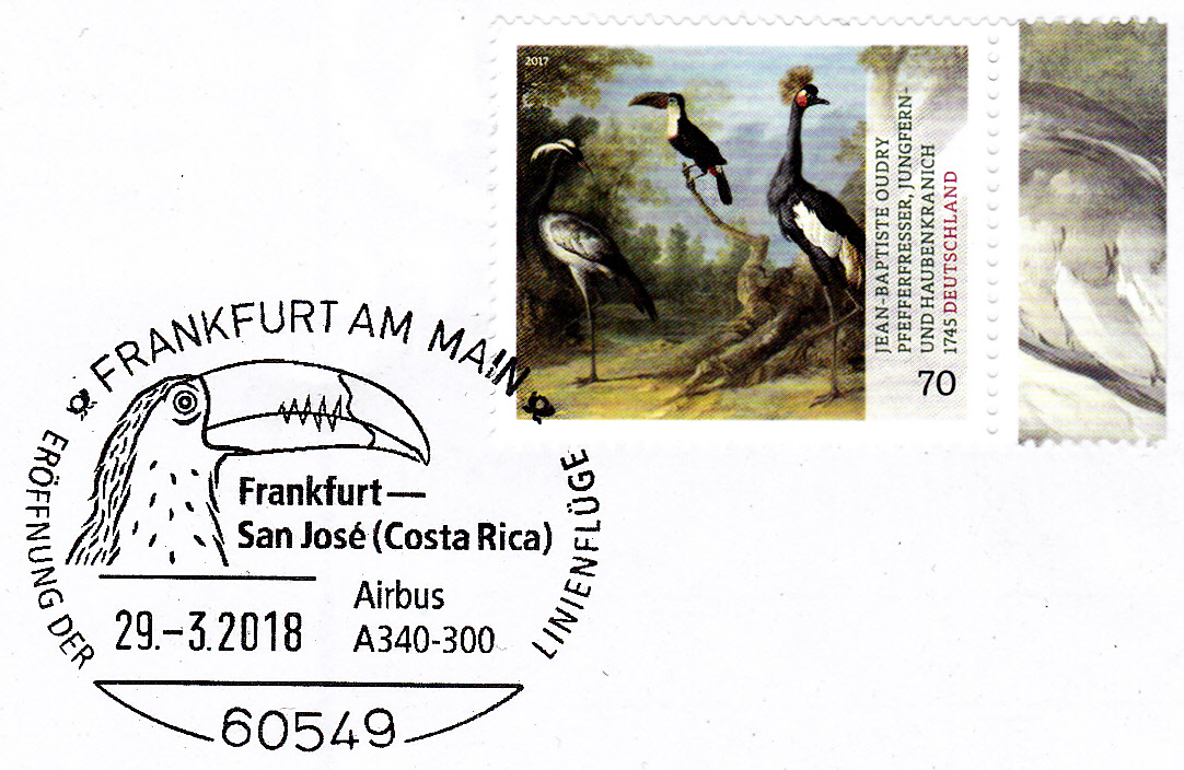 Auf dieser Marke (MiNr 1357) aus Sao Tomé und Principe (ein Inselstaat im Golf von Guinea) soll laut Angabe auf der Marke ein Tukan aus der Gattung Ramphastos zu sehen sein. Dem auf der Marke angegebenen Namen Ramphastos maximus konnte ich in der Auflistung der Arten in der Gattung nicht auffinden. Nach langem Suchen komme ich zur Meinung dass die Marke einen Dottertukan der Unterart Ramphastos vitellinus Ariel, der auch Arieltukan genannt wird, zeigt. Diese Unterart kommt in Brasilien südlich des Amazonas vor.