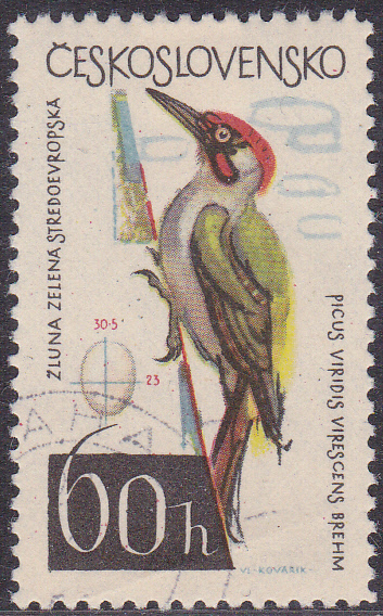 Diese Marke aus der Tschechoslowakei (MiNr 1496) zeigt einen Grünspecht (Picus viridis) und ein Ei dieses Vogels.