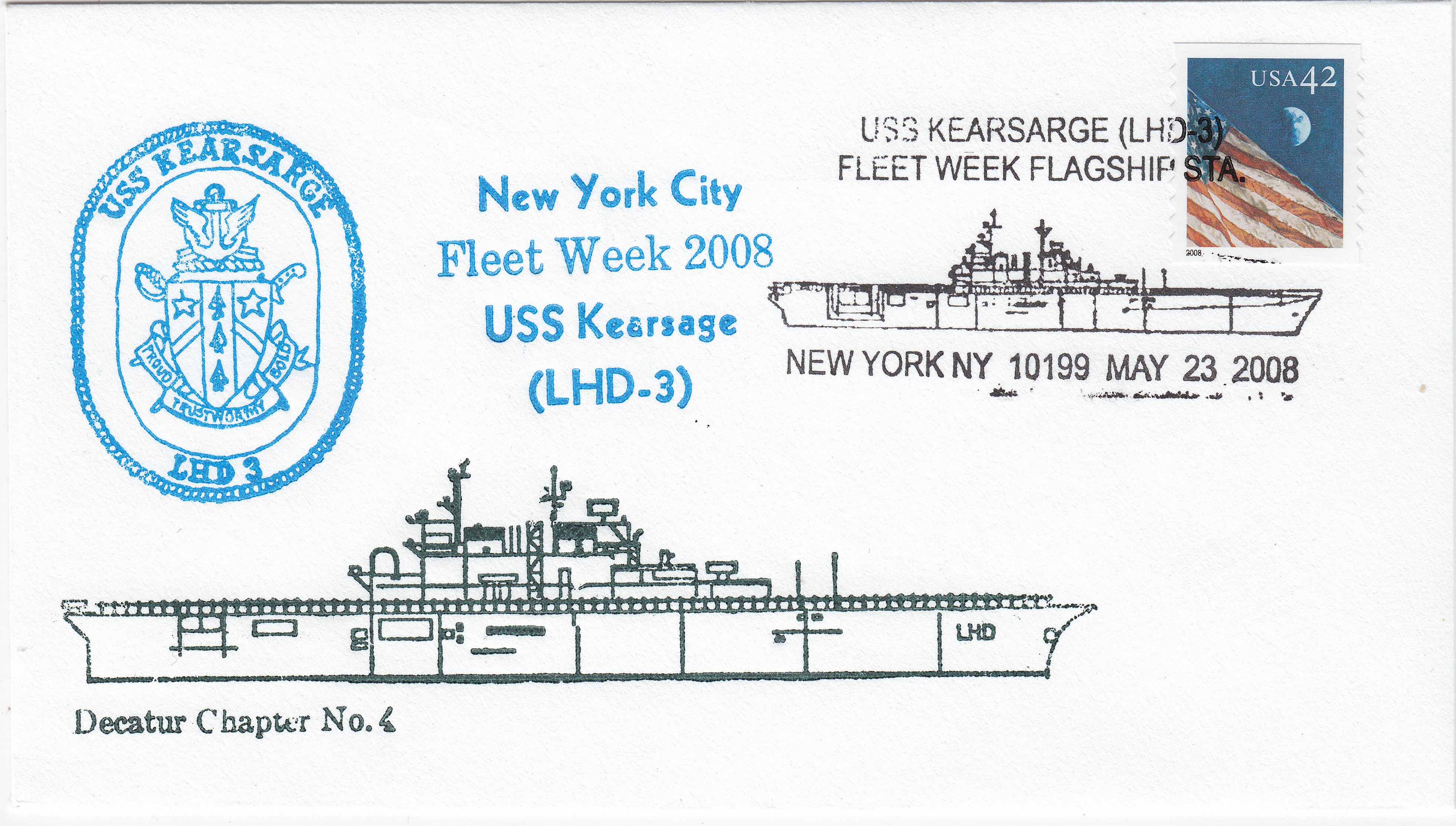 Zusätzlich wurde ein Cachetstempel in Blau abgeschlagen, der den Badge des Schiffes zeigt.