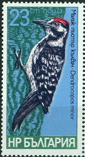 Auf einer bulgarischen Marke des Jahres 1978 ein weiterer Kleinspecht.