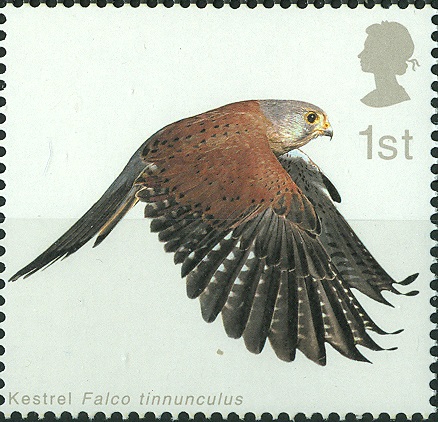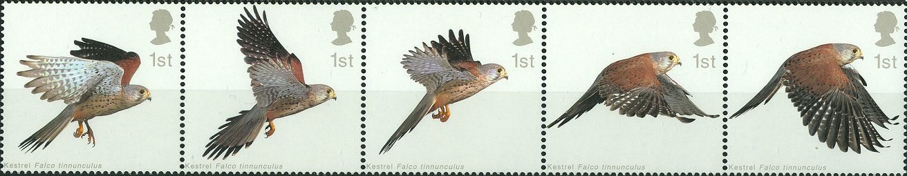 Die GB-Postverwaltung brachte eine sehr schöne Markenserie zum Turmfalken heraus. Und zwar eine Flugphasenserie.