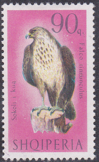 Hier folgt eine Marke aus einer albanischen Serie mit Greifvögel (MiNr 1130) mit einem Turmfalken (Falco tinnunculus).
