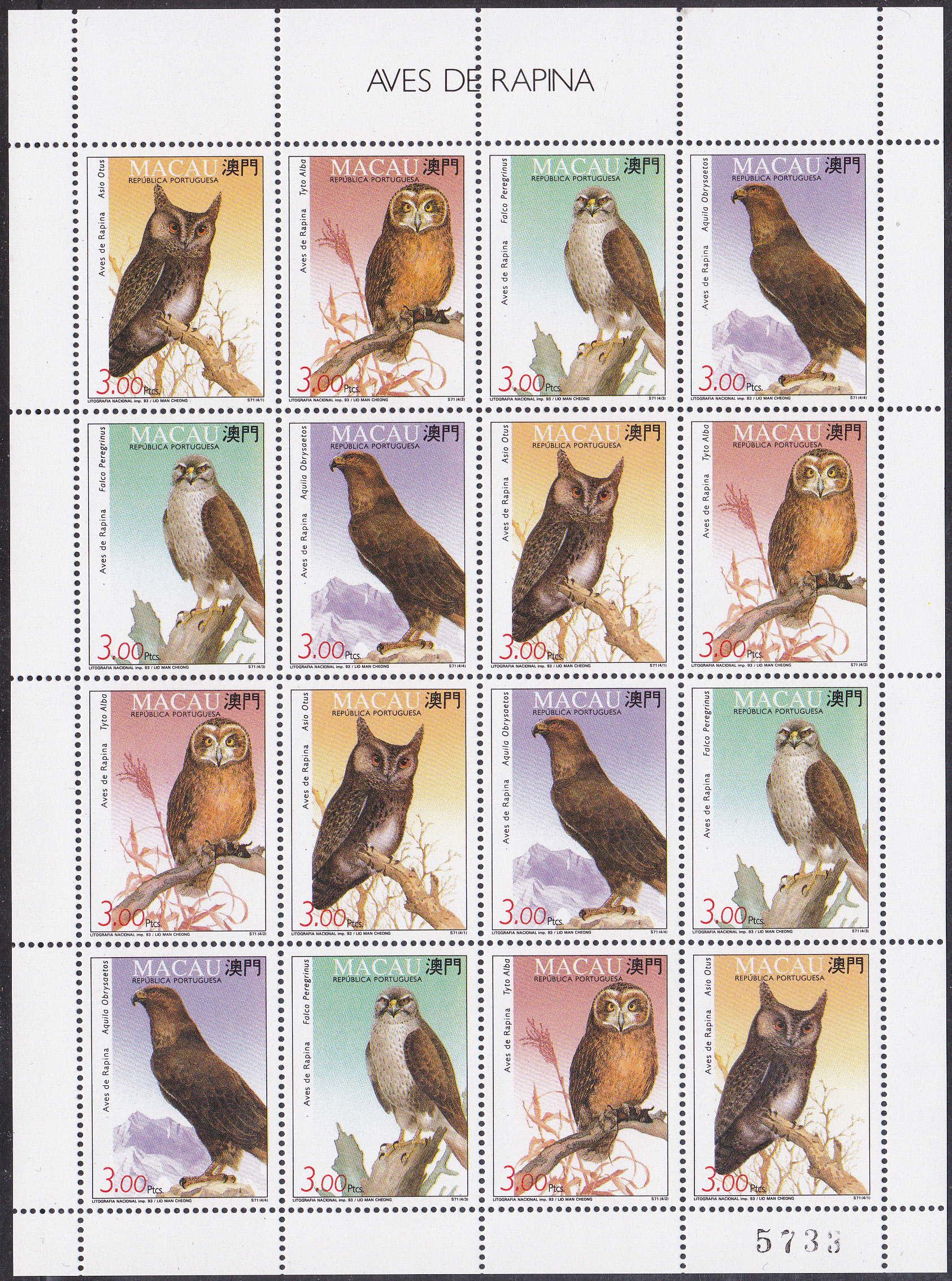 Diese Marke wurde zusammenhängend mit drei weiteren Marken zusammenhängend im Bogen gedruckt, wobei die Reihenfolge in jeder Reihe anders ist. Hier ein kompletter Bogen: