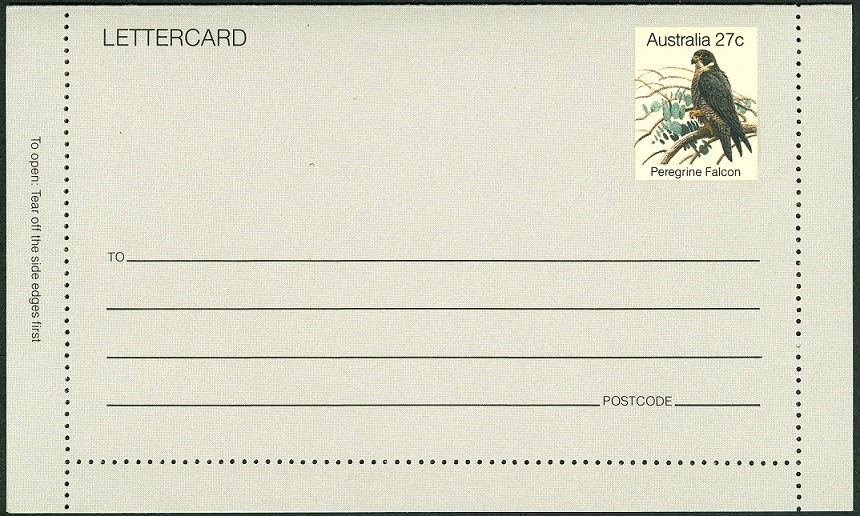 Ein weiterer Wanderfalke (Falco peregrinus) ist auf dieser Marke aus Frankreich (MiNr 2466) zu sehen. Daneben werden sein Flugbild und je eine Detailansicht von Kopf und Bein mit Krallen gezeigt.