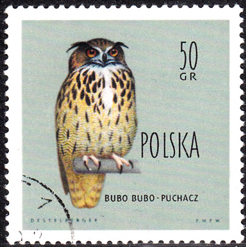Auf dieser polnischen Marke (MiNr 1201) ist ein weiterer Uhu (Bubo bubo) zu sehen.