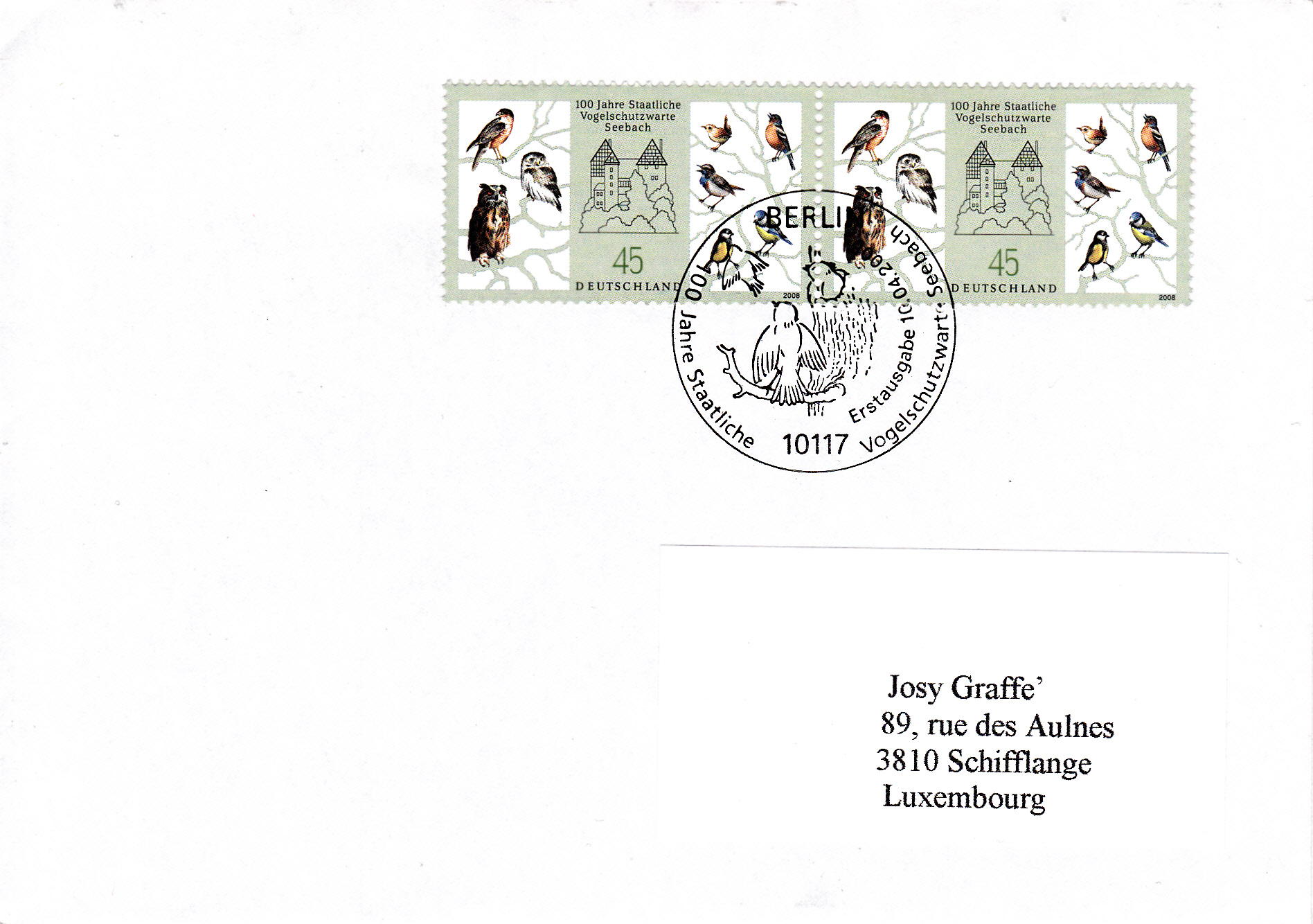Die Marke wurde als Paar portogerecht auf einem Brief nach Luxemburg verwendet und mit dem Ersttagsonderstempel Berlin entwertet.