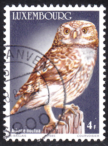 In einer Serie mit geschützten Tieren ist in Luxemburg auch eine Marke (MiNr 1133) mit einem Steinkauz (Athene noctua) erschienen.