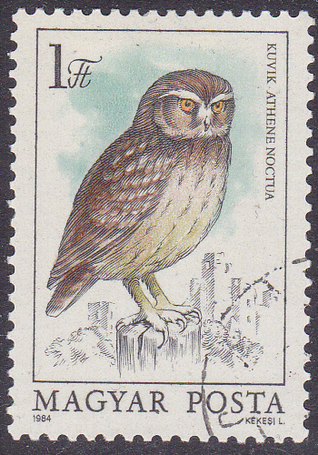 Aus Ungarn kommt diese Marke (MiNr 3725 A) mit einem Steinkauz (Athene noctua).
