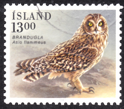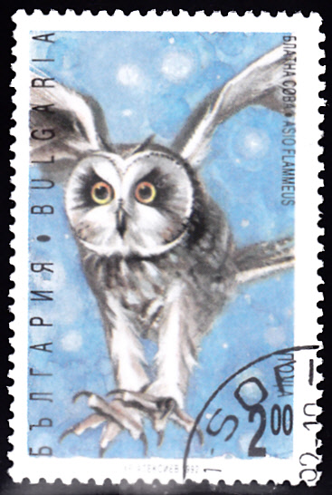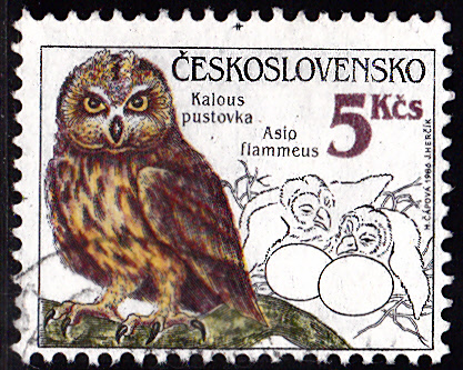 In einer Serie "Eulen" erschien in der Tschechoslowakei diese Marke (MiNr 2879) mit der Abbildung einer Sumpfohreule (Asio flammeus).