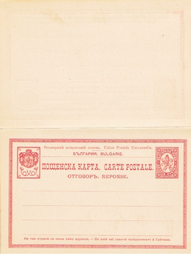 10 / 10 Stotinki Ausland-Antwortkarte. Frage- und Antwortteil oben zusammenhängend.