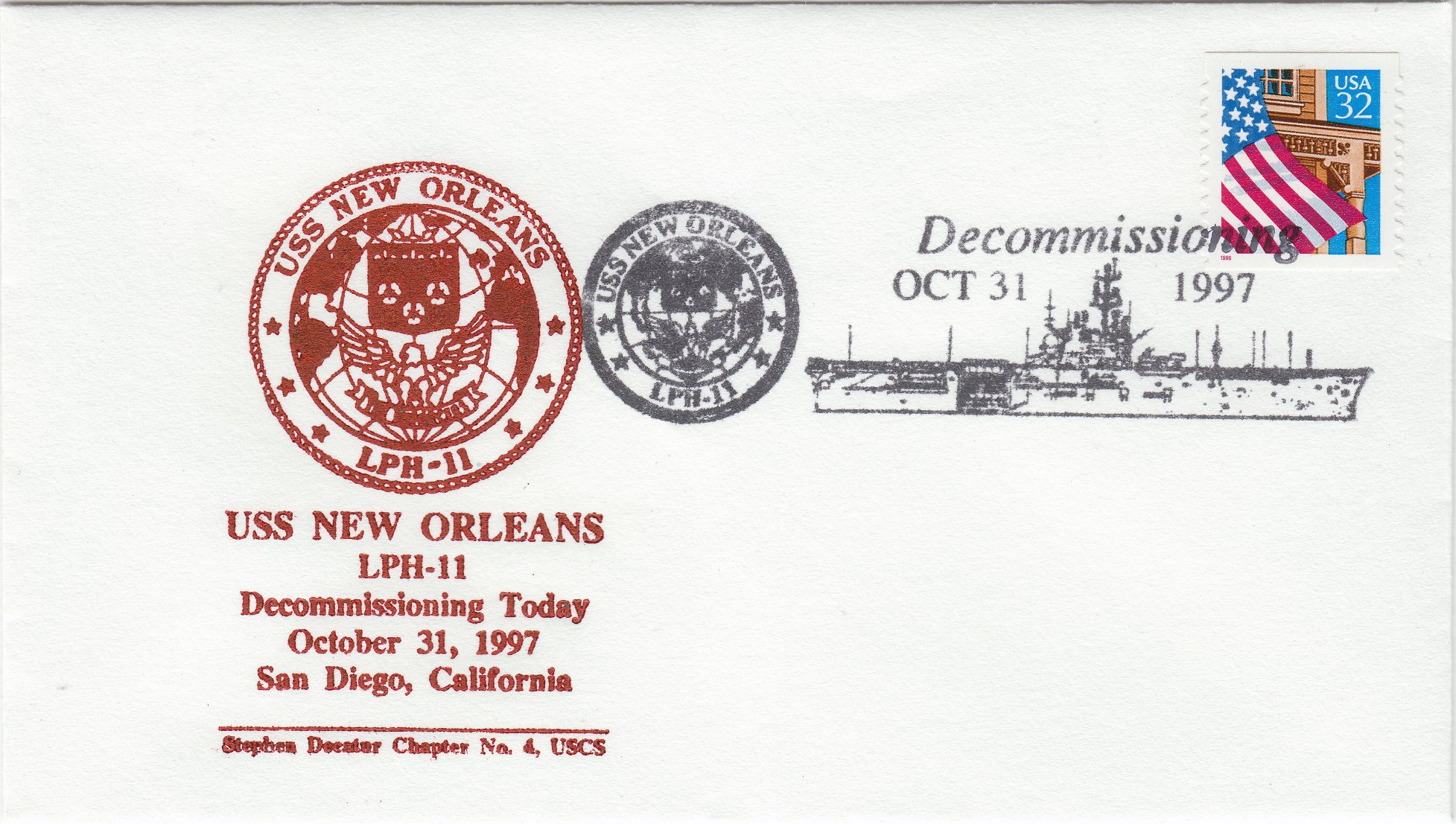 Dieser Beleg dokumentiert per speziellem Entwertungsstempel die Ausserdienststellung der USS NEW ORLEANS (LPH-11) am 31.10.1997: