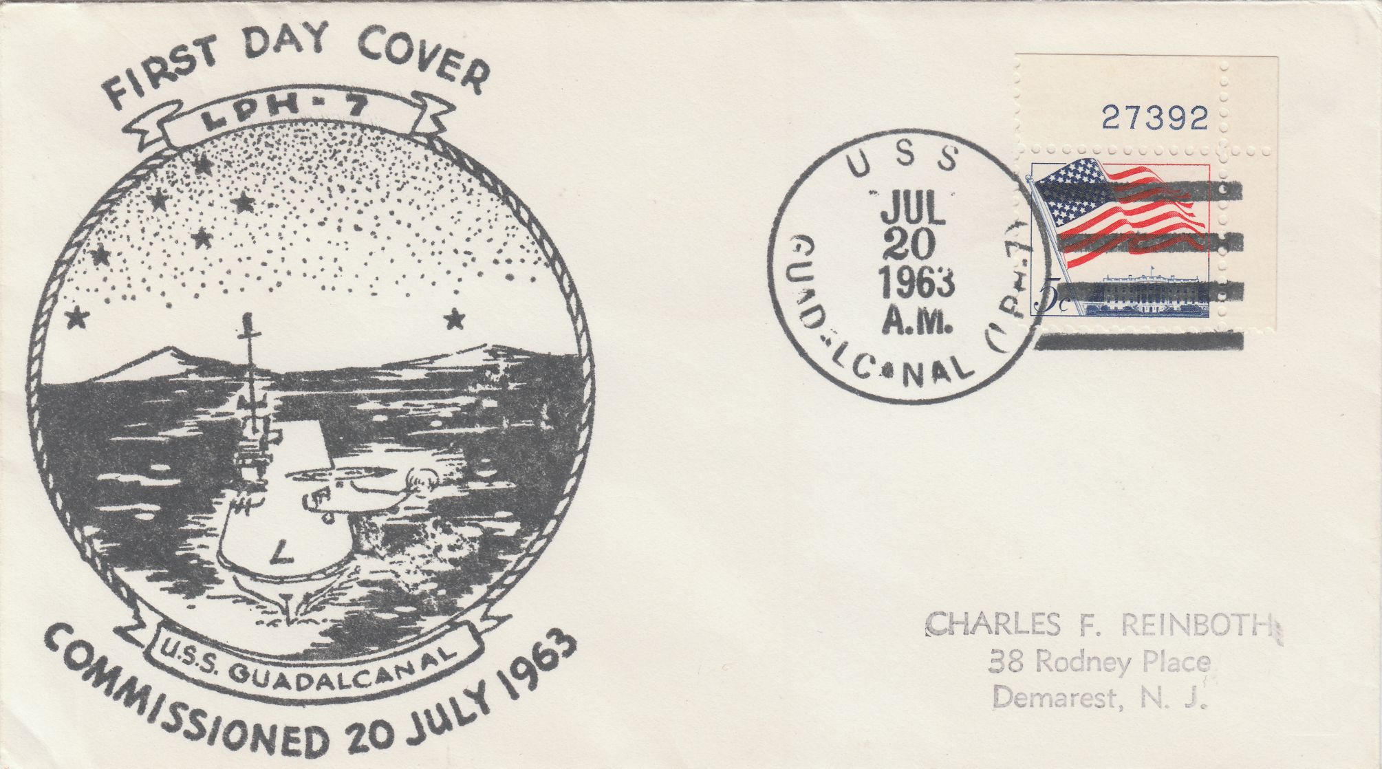 Dieser Beleg dokumentiert den 50. Jahrestag des Beginns der Schlacht um Guadalcanal im Zweiten Weltkrieg, die dem Hubschrauberträger USS GUADALCANAL LPH-7 seinen Namen gab: