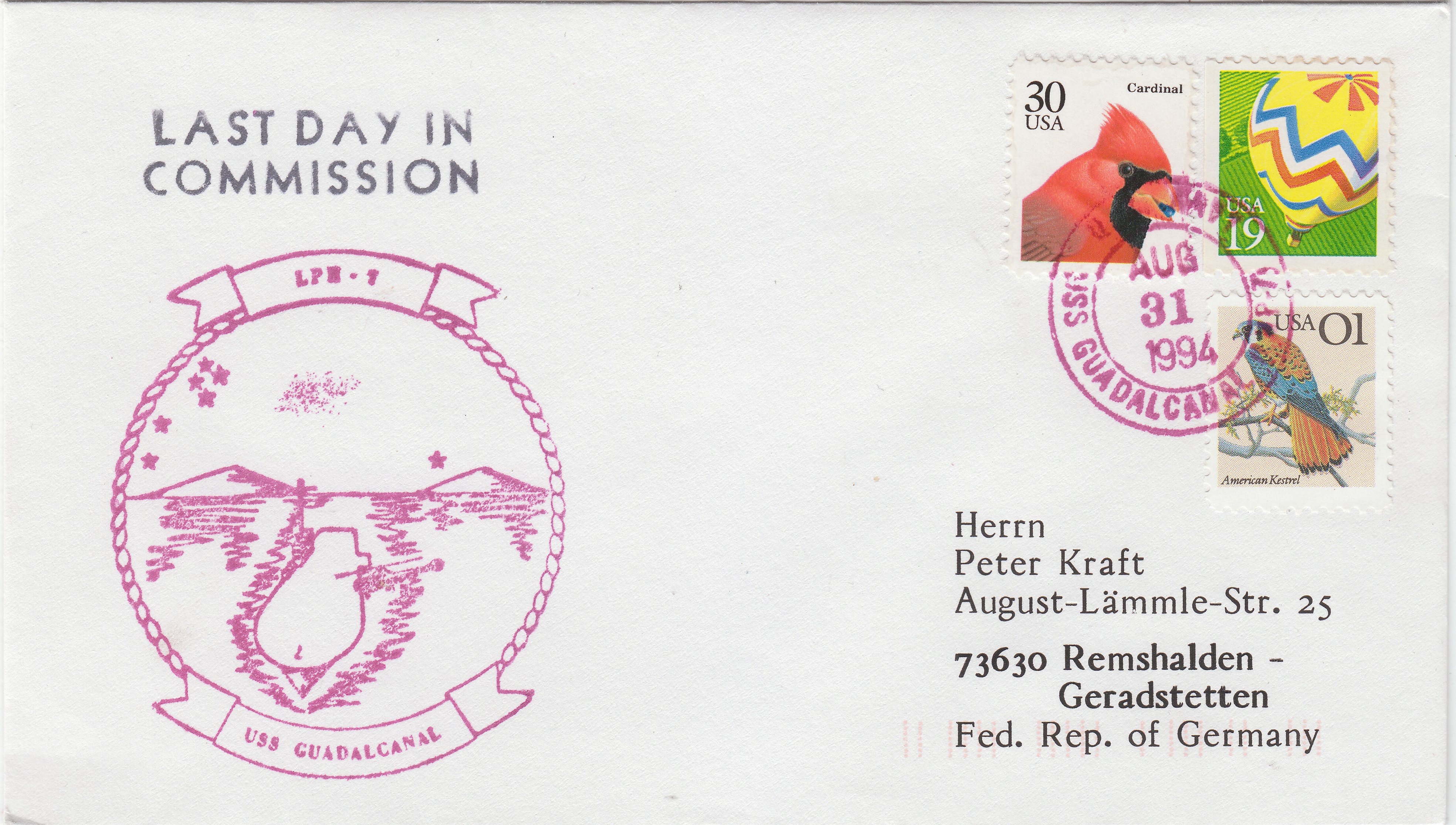 Dieser Beleg dokumentiert den 31.08.1994 als Datum der Ausserdienststellung der USS GUADALCANAL LPH-7.