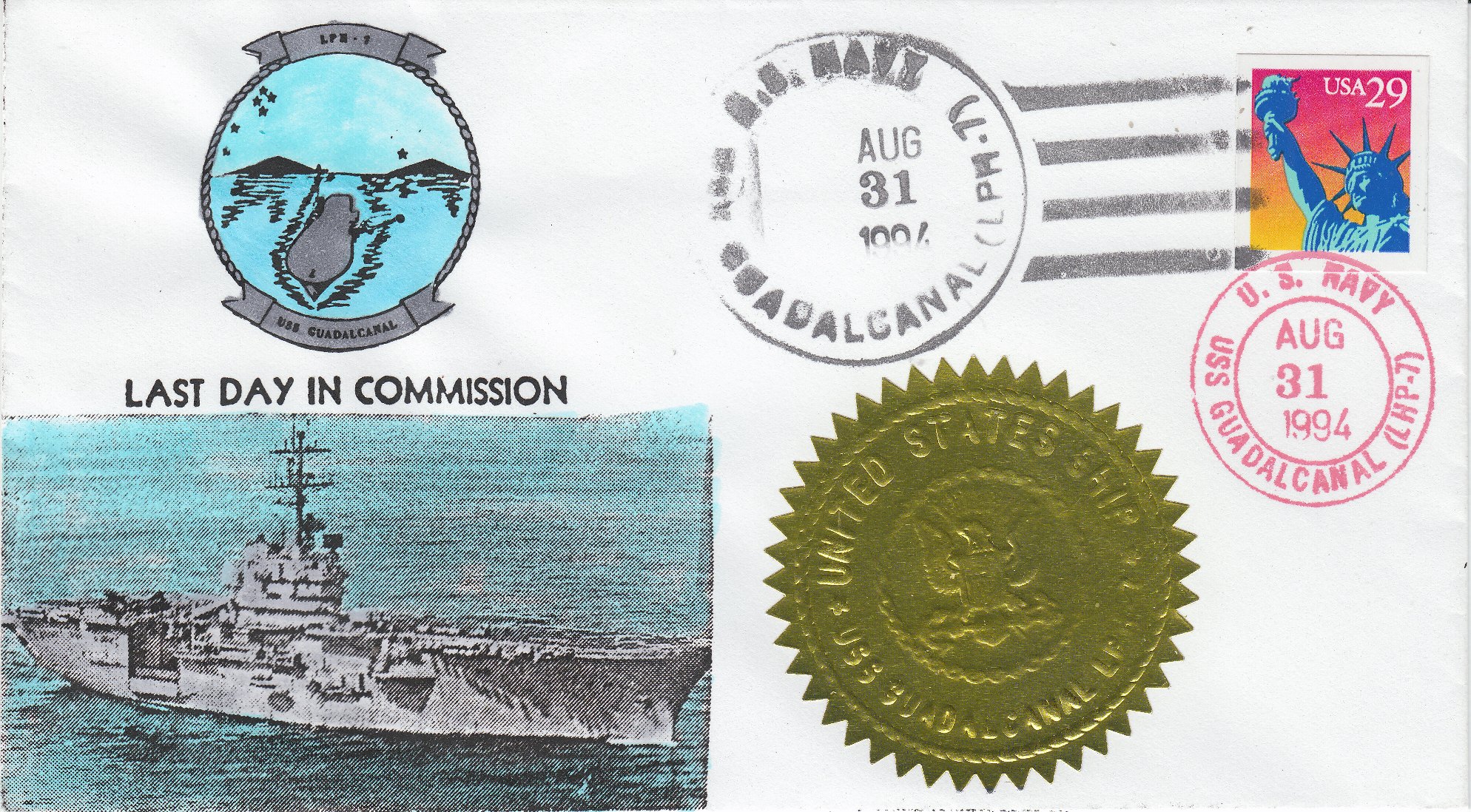 Dieser Beleg dokumentiert den 31.08.1994 als Datum der Ausserdienststellung der USS GUADALCANAL LPH-7: