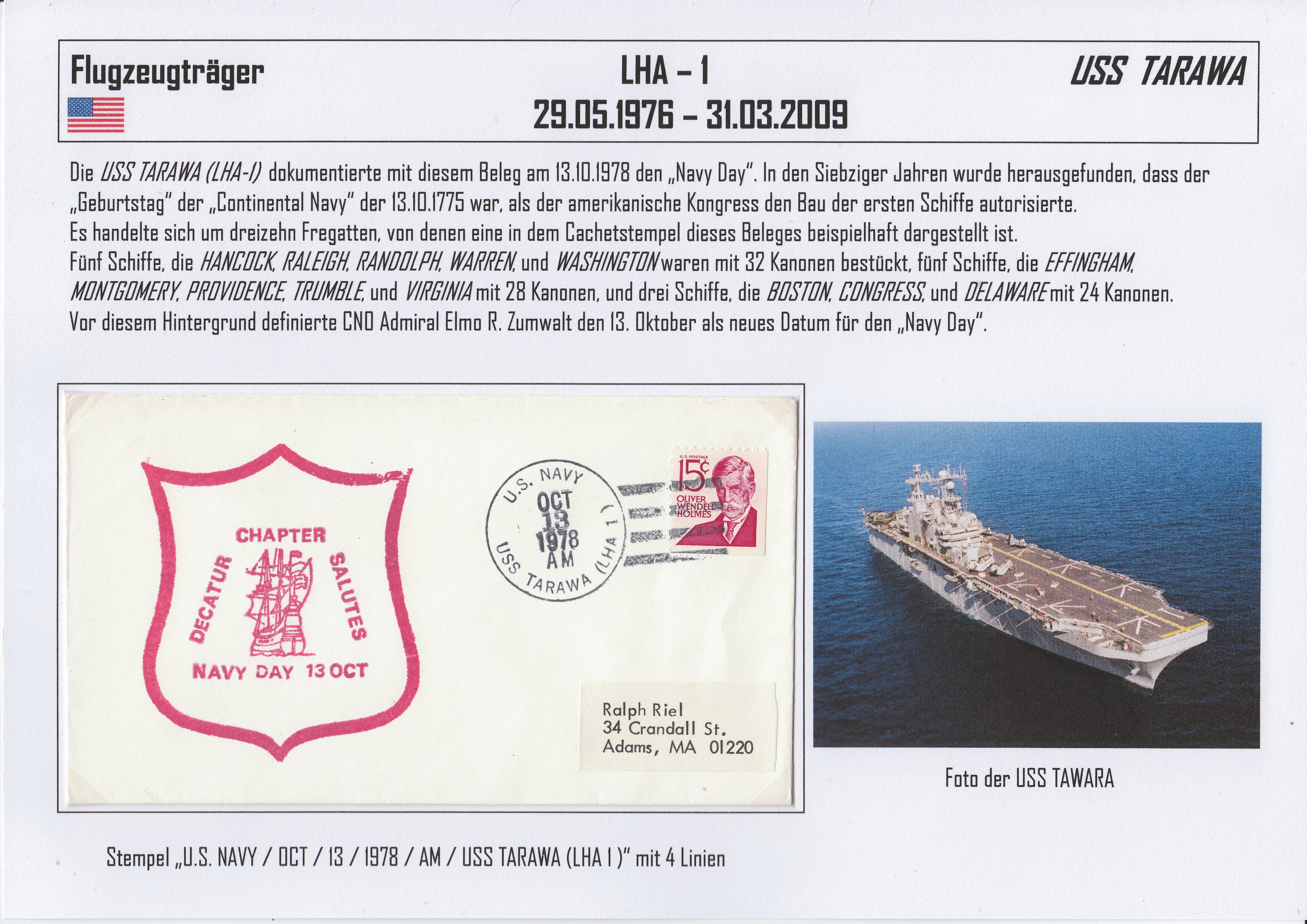 Die zweite Seite aus meiner Sammlung zum Thema USS TARAWA LHA-1: