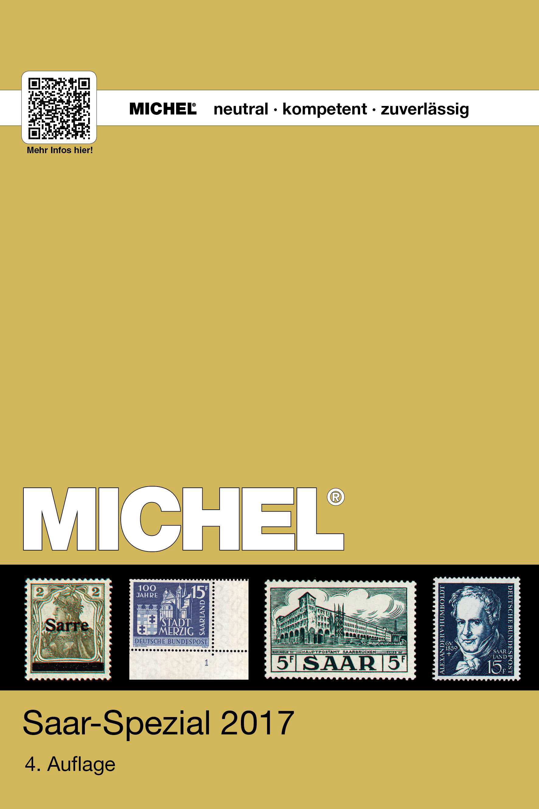Am 11. Mai 2017 erscheint der neue Michel-Katalog Saar-Spezial 2017 in der 4. Auflage in Farbe mit 200 Seiten im Format 152 x 203 mm als Hardcover. Er kostet in Papierform als Katalog 49,80 €. Er enthält: Das Sammelgebiet "Saar" von 1920 bis zum 5. Juli 1959, d.h. "Deutsche Abstimmungsgebiete (Saargebiet)", "Saarland" und "Saarland" als Bundesland der BRD mit ergänzenden Informationen der Bundesarbeitsgemeinschaft Saar für Philatelie und Postgeschichte