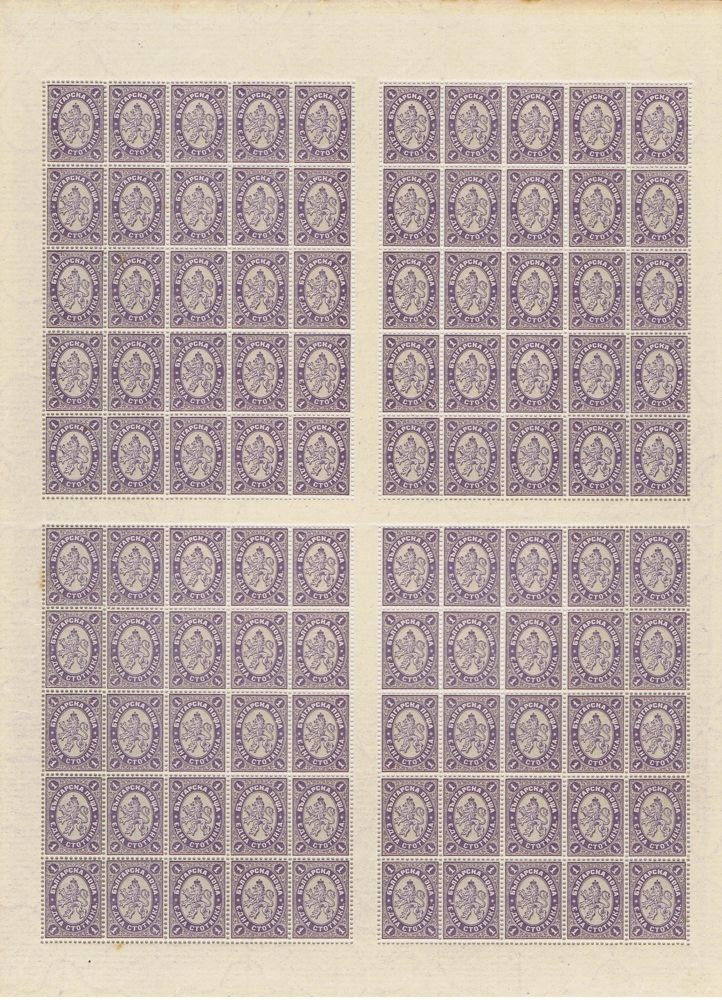 Bogen zu 100 ( 4 x 25 ) mit Rändern. Maße: 238 x 286 mm.
