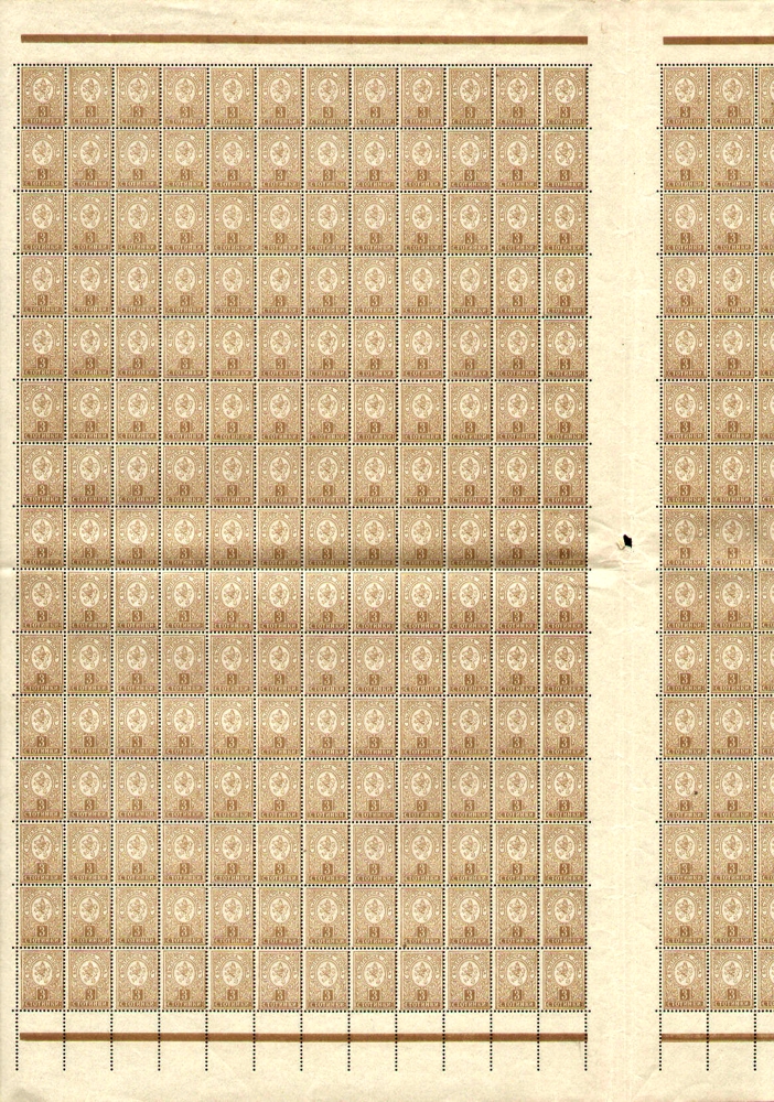 Wert / Farbe: 3 Stotinki, braun.