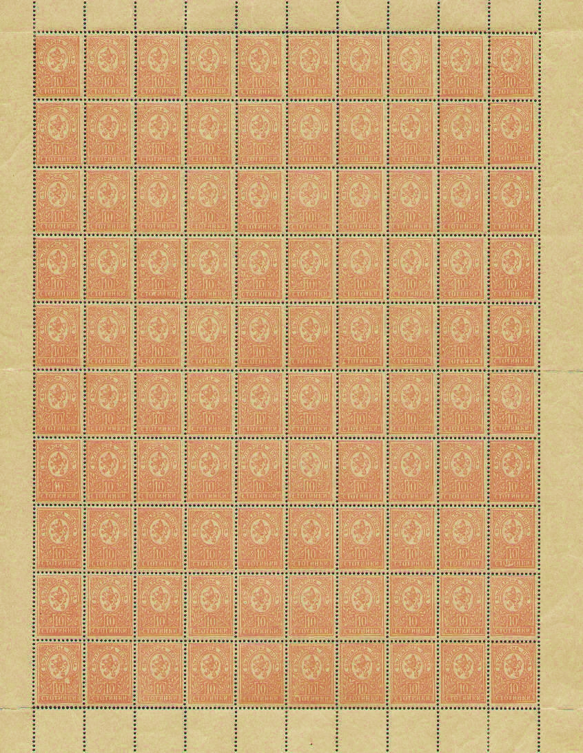 Wert / Farbe: 10 Stotinki, rosa