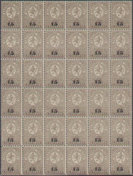Wert / Farbe: 15 auf 30 Stotinki, dunkelbraun.