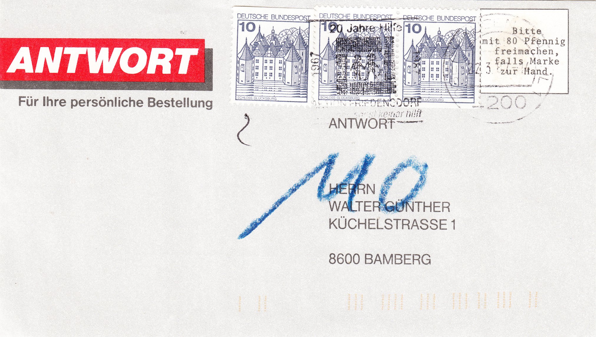 Der Aufdruck "Nicht freimachen! Gebühr zahlt der Empfänger" war also wörtlich zu nehmen, um keine zusätzlichen Gebühren von der Post aufgebrummt zu bekommen.