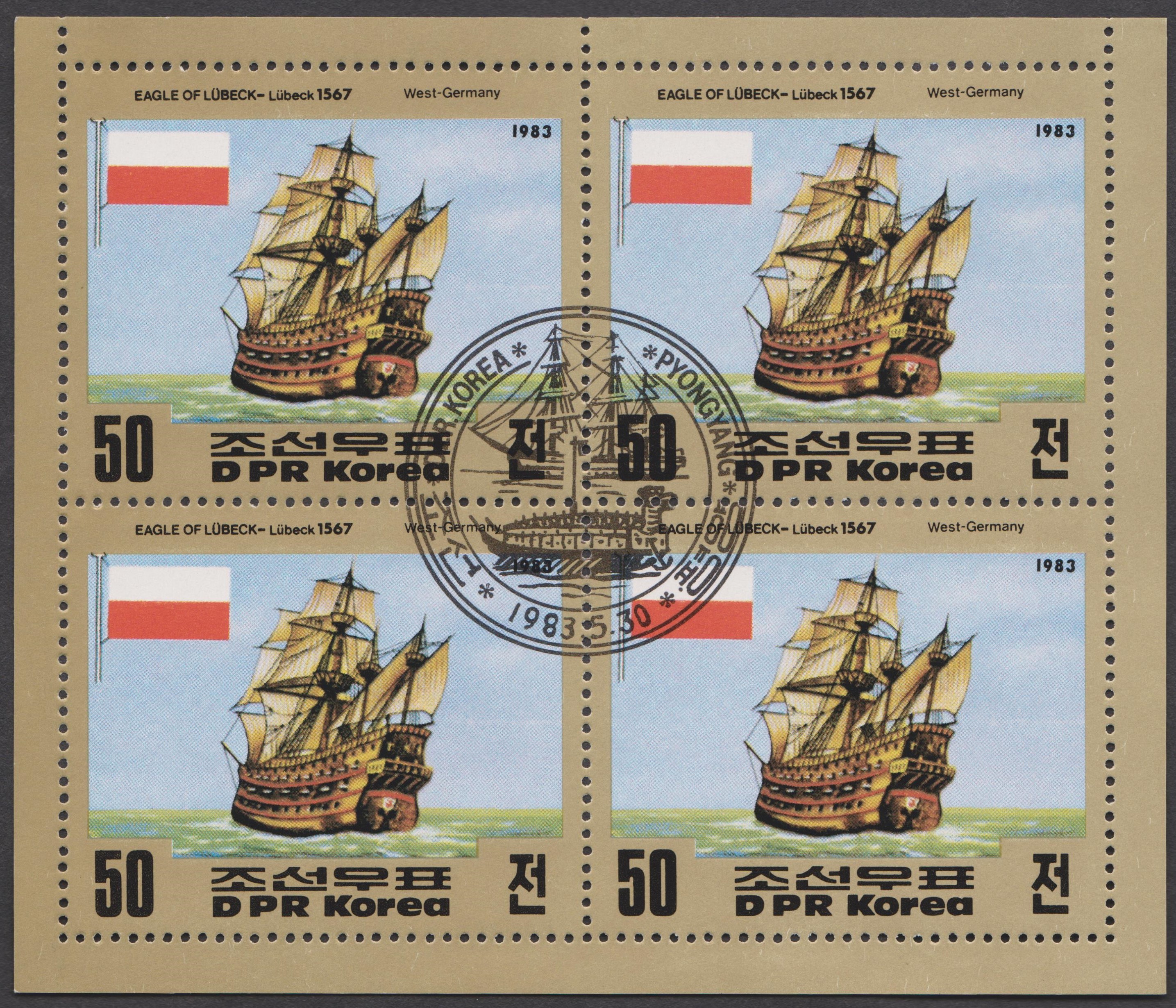Die EAGLE OF LÜBECK = Adler von Lübeck war ein Segelschiff aus dem Jahre 1567, hier dargestellt auf Nordkorea MiNr. 2365: