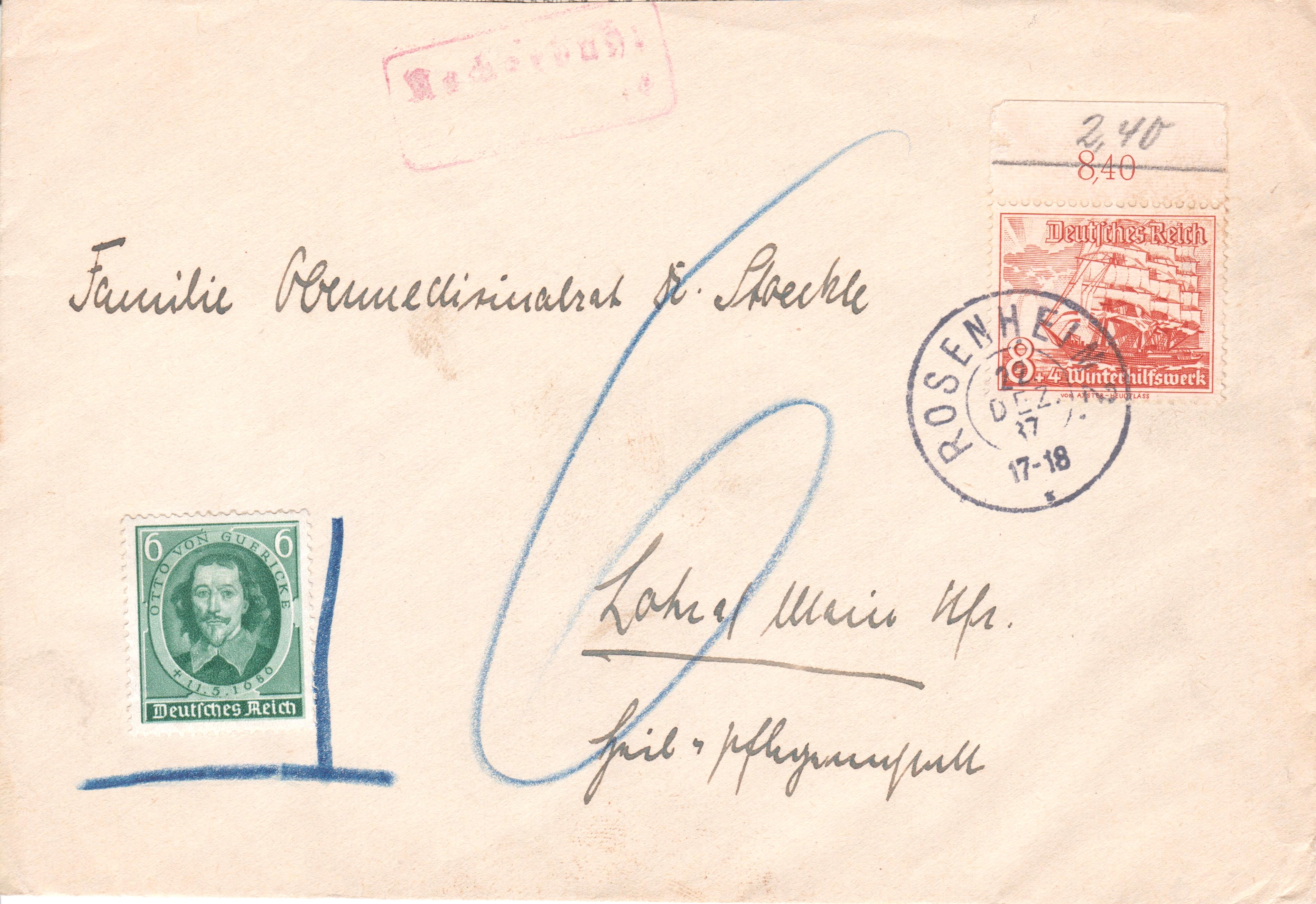 Dieser nach Lohn am Main adressierte Brief wurde am 22.12.1937 in ROSENHEIM aufgegeben: