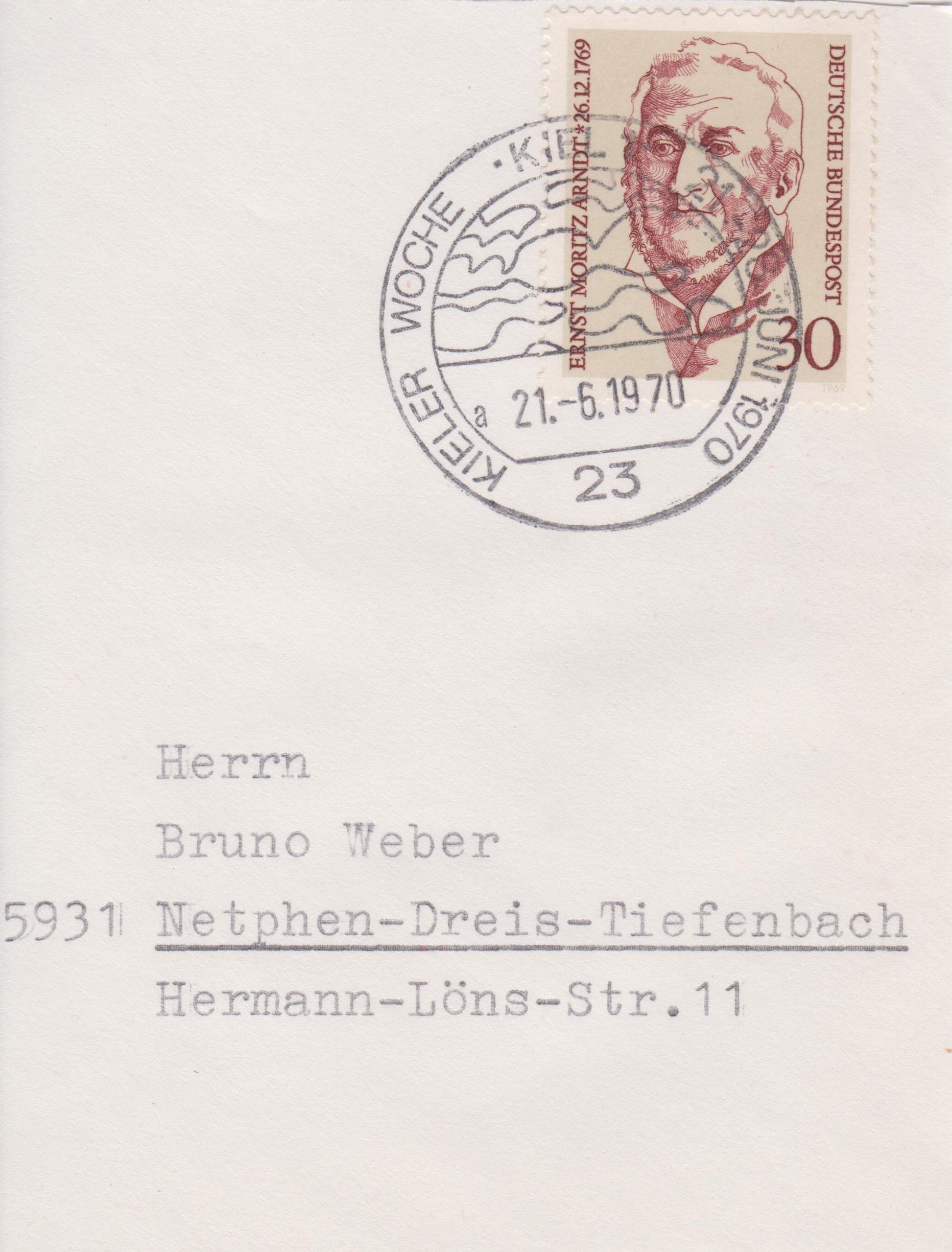 Sonderstempel zur KIELER WOCHE 1970 auf Briefstück: