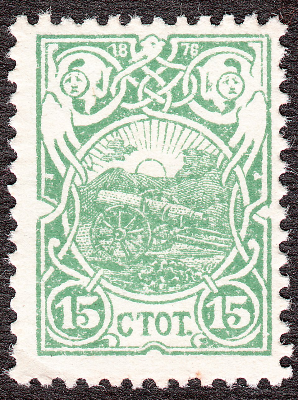 Foren-Übersicht Fragen und Diskussion Europa Bulgarien Markenausgaben Fürstentum 16.04.1879 - 04.10.1908 1901 25. Jahrestag des Aufstandes gegen die Türken MiNr. 48 bis 49 Bulgarien MiNr. 49 - 15 Stotinki grün MiNr. 49 Type 2: Bruch des Ornaments rechts der 8