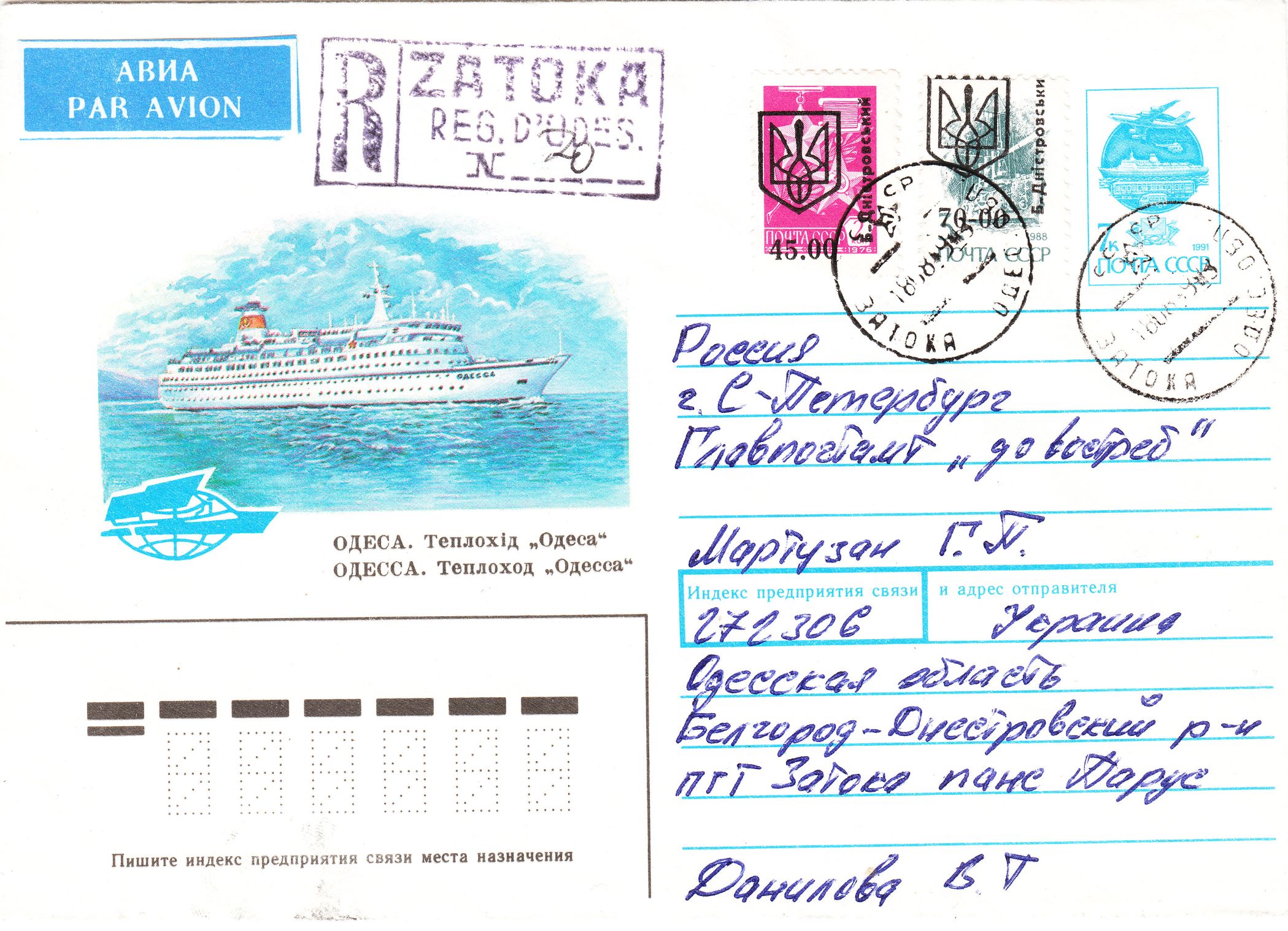 Aufgegeben wurde dieses Exemplar versehen mit einer Zusatzfrankatur in ZATOKA in der Ukraine.