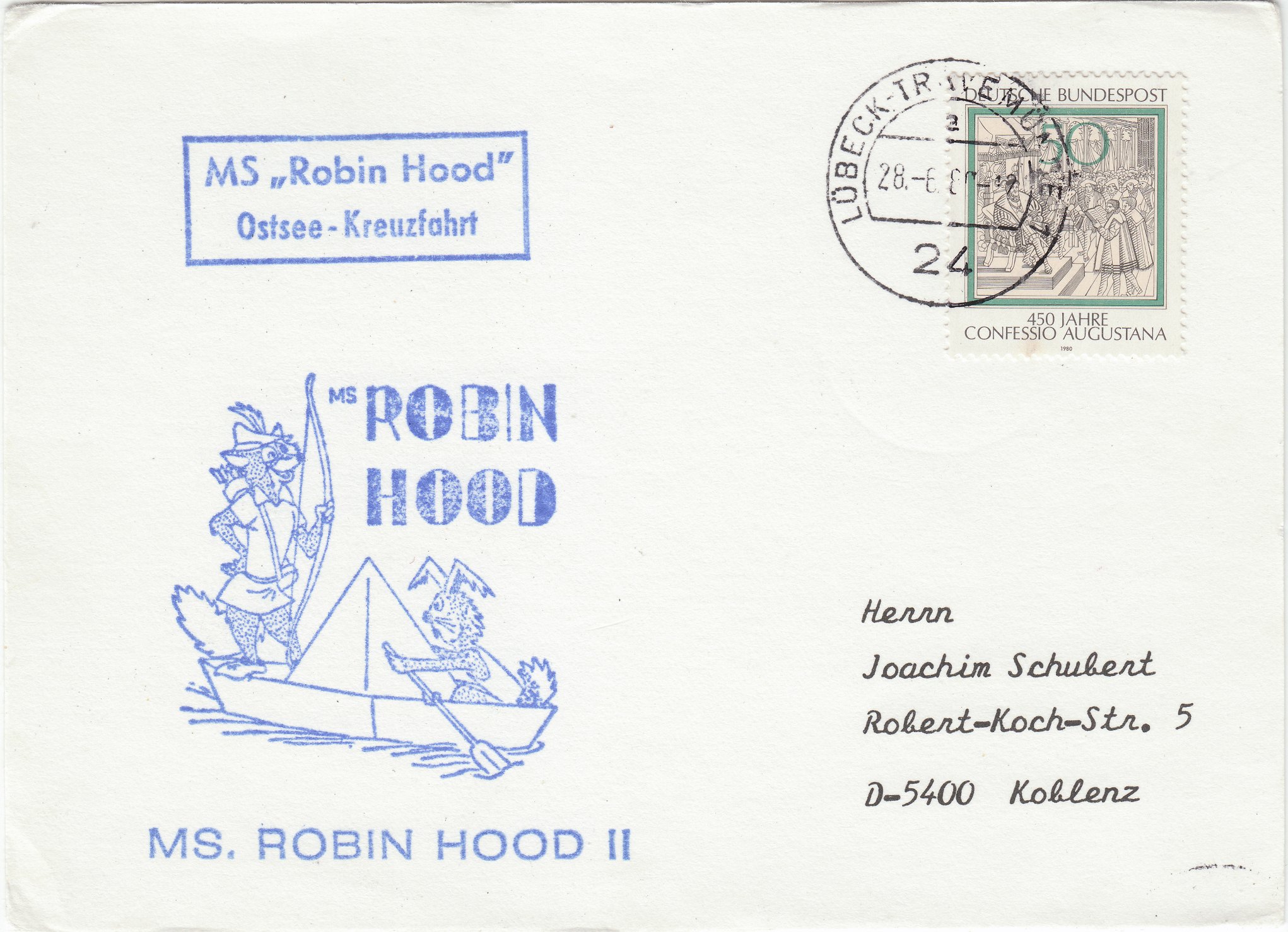 Dieser Beleg vom 28.06.1980 dokumentiert diese Phase der MS ROBIN HOOD II per Cachetstempel: