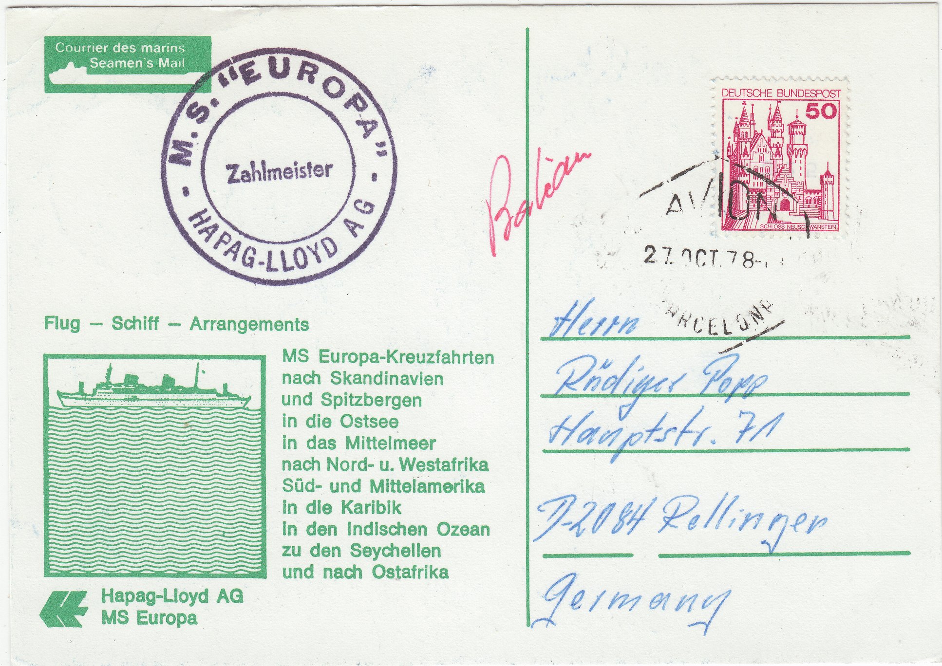 Dieser Beleg stammt von der Abschieds-Gala-Kreuzfahrt, die vom 12.09.1981 bis zum 04.10.1981 stattfand: