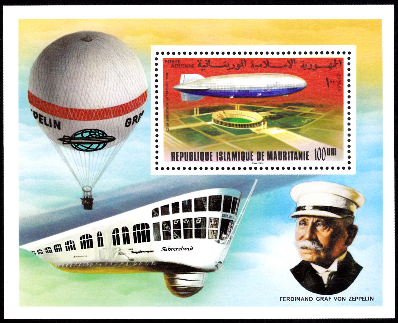 In einer Marke (MiNr 545) aus dem Block aus Mauretanien(MiNr Bl 15) wird LZ 129 Hindenburg bei der Olympiafahrt über dem Olympiastadion in Berlin gezeigt. Auf dem Bogenrand sind ein Porträt von Graf Zeppelin, ein Teil von LZ 127 und der Freiballon "Graf Zeppelin" zu sehen.