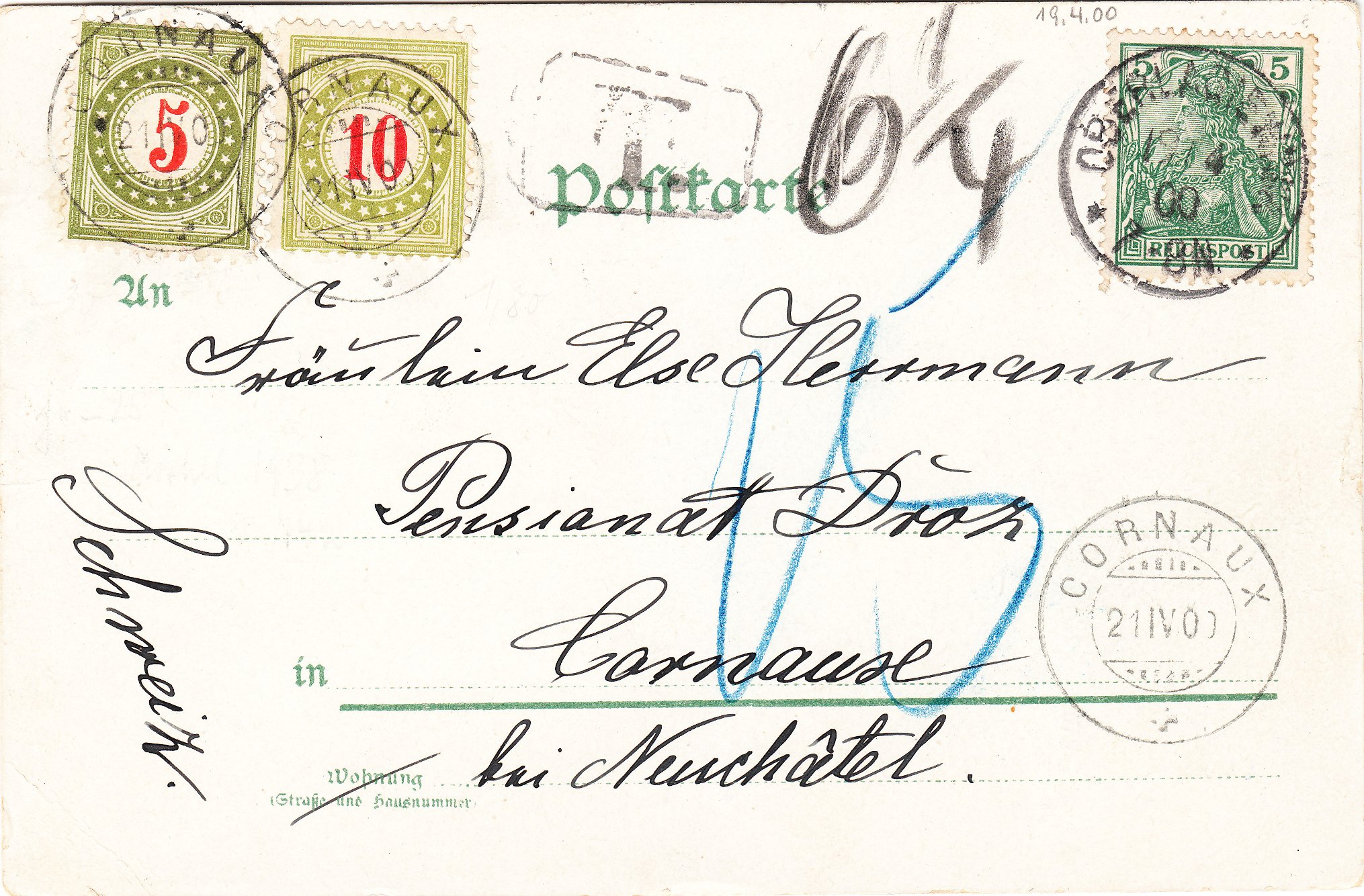 Die fehlenden 500 Mark wurden in der nicht von der Inflation geplagten Schweiz auf moderate 50 Rappen umgerechnet, die in Bern am 20.07.1923 mit einer Portomarke auf dem Beleg dokumentiert wurden und die der Empfänger zu zahlen hatte.