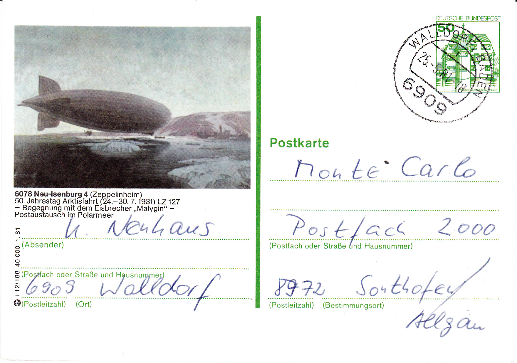 Auf dieser Bildpostkarte MICHEL P 134 der Teilserie = Auflage "i" (1981) ist die Begegnung von LZ 127 und der Malygin bildlich nach einem Gemälde von Alexander Kircher festgehalten.