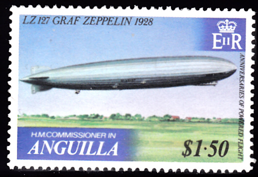 Aus Anguilla kommt ebenfalls eine Marke (MiNr 357) mit einer Abbildung von LZ 127 "Graf Zeppelin".